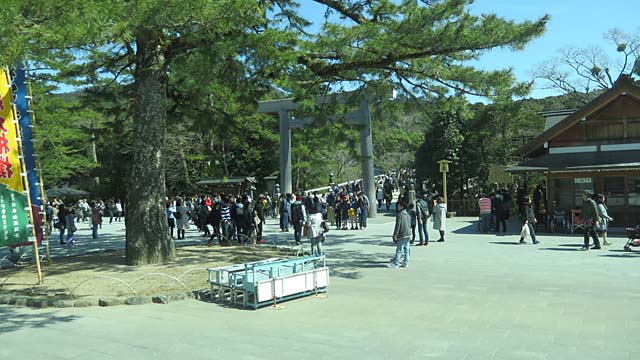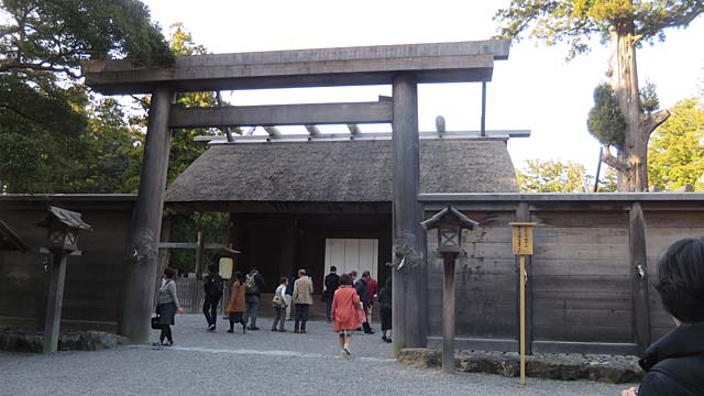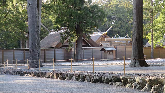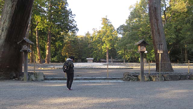 見えてきました。手前が古殿地です。式年遷宮する前まで神様を祀っていたところ。20年に一度お隣りへお引越しです。内宮の方では現在は手前におられるので奥の古殿地は見ることは出来ません。