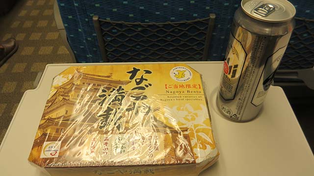 帰りの駅弁。ご当地限定のなごや満載にしました。ビール付き(笑)
