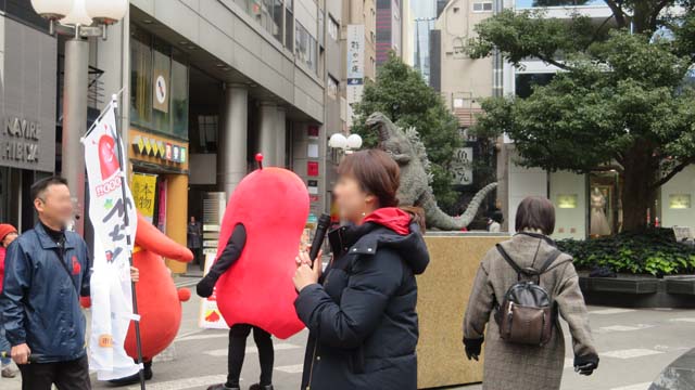 着いたはいいけれどなにか賑やか。NHKのネットラジオ「らじるらじる」のキャンペーンに鹿児島県曽於市公認ゆるキャラ「そお星人」が参戦してたようで。