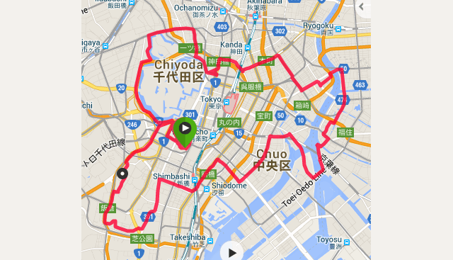 記事を読んでみると参加者は二つに分かれるようですね。ひたすら指定されたコースを走る人。もう一つはあちこち寄り道しながら楽しむ人。築地で食事してたりしますからね(^^ゞ