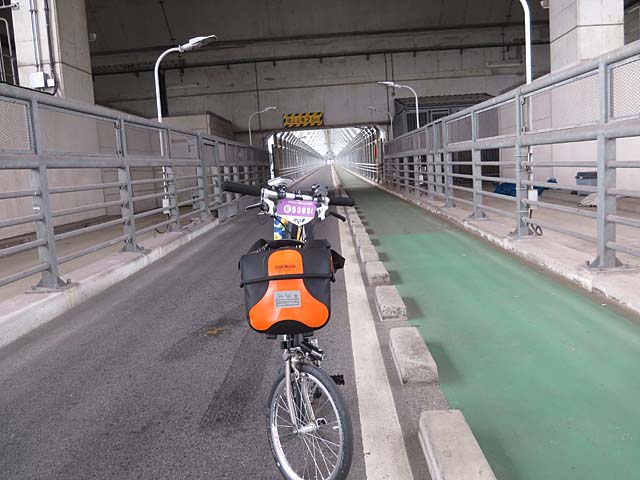 しまなみ海道唯一、自動車道の下に自転車道のある因島大橋。最後の島、向島入りです。