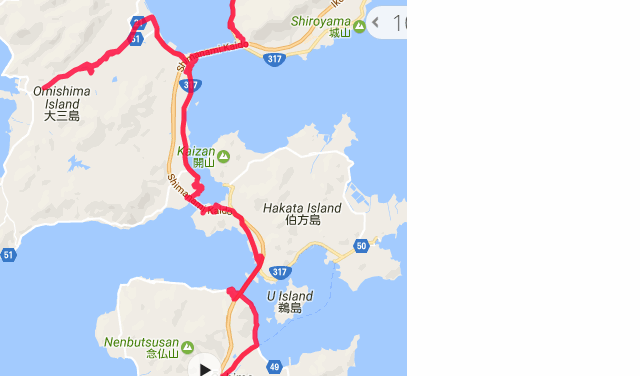 大山祇神社へ向かうためにしまなみ海道を離れた部分は13km 50分ほどでした。