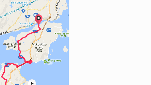 全体的にみると橋を渡るためのアップダウン以外は多少あるものの大きく上るのは大島の宮窪峠だけですね。信号等で止められることも少なく長距離が走れる快適なコースだと思います。