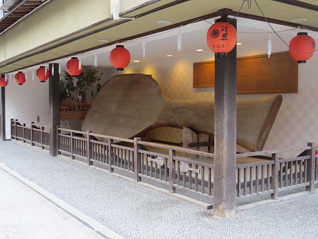 巨大なしゃもじ。杓子発祥の地である宮島のシンボルとして製作されたもの。厳島神社が世界遺産登録を機に展示を始めたそう。