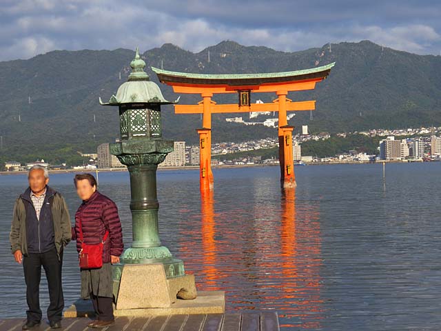 ご夫婦でしょうか。平舞台の先端で大鳥居をバックに記念撮影(*^^*)