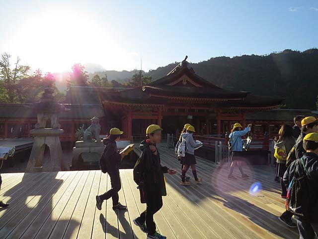 、修学旅行とおぼしき集団。宮島に泊まったのかな。