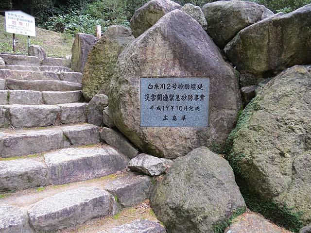 途中には砂防堰が作られ厳島神社をはじめ集落を守っています。