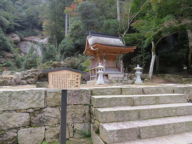 瀧宮神社。1180年高倉上皇が参詣したとされる。本殿は平成17年土石流に流され平成24年に再建されたもの。