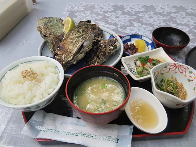 もみぢ茶屋で焼きかき定食(だったと思う)。おいしくいただきました。