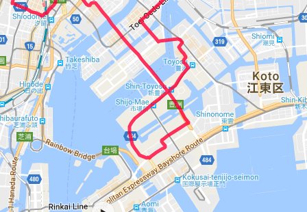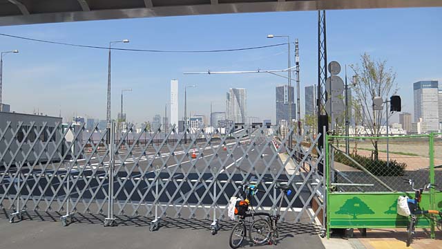 2020年の東京オリンピック、環状2号線用にかけられた橋。築地市場が移転した後つながる予定ですが豊洲問題で出来上がっているにもかかわらず封鎖されたまま。