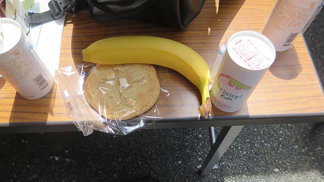 20.5km付近に設置されていた協力参加のスタバのエイド。12時までなのだけど到着は12時1分。間に合わなかった(--; エイドとしては12時半までOKとのことで提供のジュースとクッキーとばななをいただきます。(クッキーは最後の数枚だったようで後の人にはなかったようです。ばななはたくさんあったのでもう一本いただいちゃいました(^^ゞ)ここはコース上唯一のエイドステーション。もう少し手前でもいいのではないのか? なんていうことも思ったのですがそれはそれで。道草自由なイベントなのでエイド設置は考慮されないんでしょうね。