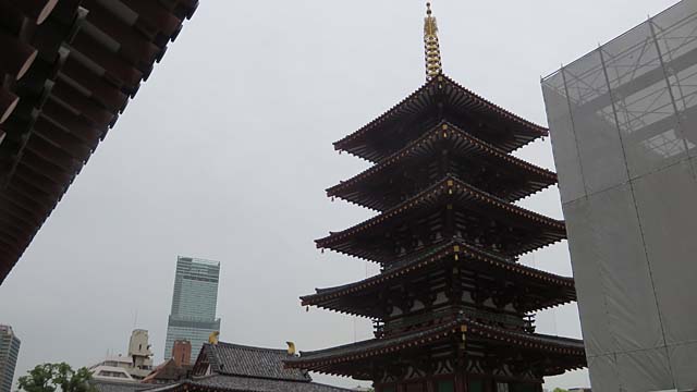 五重塔とあべのハルカス。今昔共演です。五重塔に登り最上階にある舎利塔を拝みます。