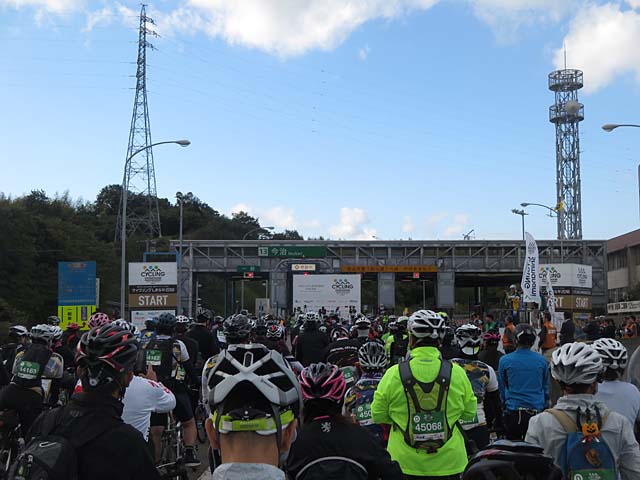 スタート地点8時30分です。高速道路上では写真も撮れないので飛ばします。1時間半ほどで最初のエイドステーション瀬戸田PAに到着です。手荷物預けが7時半までとスタートまで1時間あり結構寒いのでトイレ~。しかし長蛇の列です。待つこと15分何とか間に合いました(笑)。ドリンクとフードも長蛇の列です。自前で用意してあるのでここはパスして先を急ぎます。