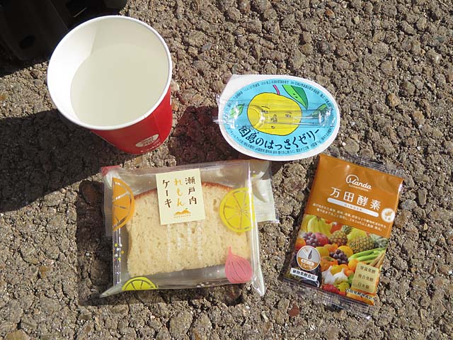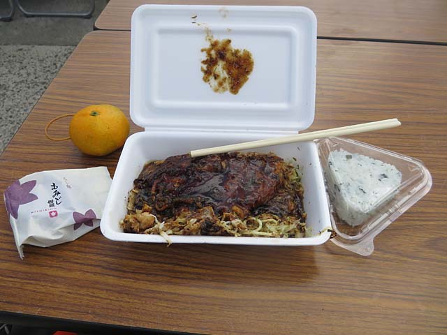 12時にゴール、走行距離68㎞。フィニッシュフード。尾道駅13時28分の電車に乗れれば備後国の流れから外れている場所巡りが今日中に完了できるので食事もほどほどに駅へ向かいます。