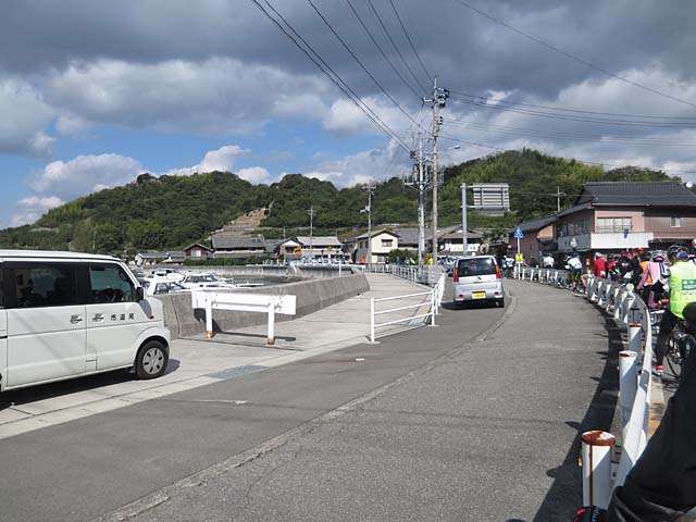 向島から本州へ渡るフェリー(チャーター便)に乗るために設けられた待機場所。あまり待たずに乗れそうです。