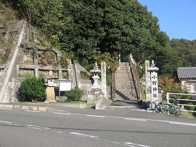 小野神社です。元町産土神だそうで御祭神は第六代 孝安天皇妃で第七代 皇霊天皇の母?らしい。案内が読めないところがあるので。歴史的には系譜から見ると押媛命が該当するが欠史八代の所なので実在したかは不明ですね。御祭神としては実在したかは意味のないものだと思います。