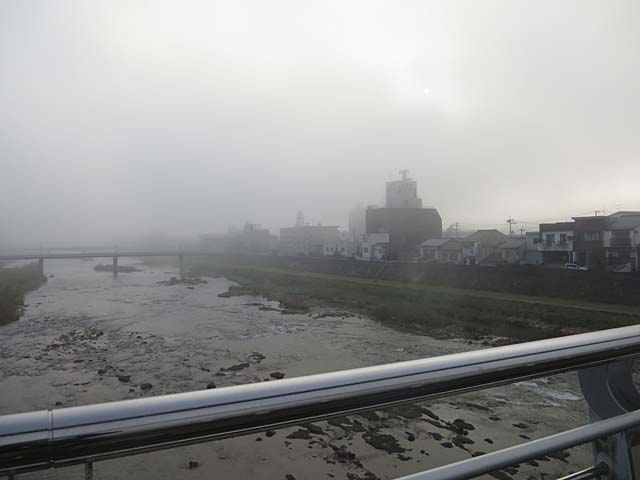 7時過ぎゆげ駅にて。だいぶ内陸に入っているからか霧に包まれてます。