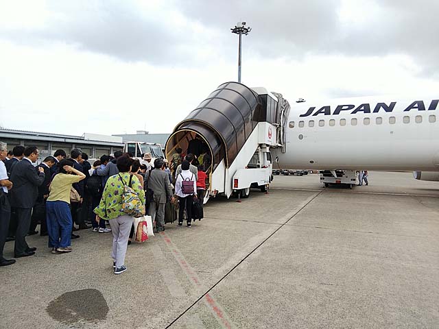 ライト君を預け、保安検査も通過。のんびりと待つのも... 乗るべき機体の到着が遅れているという。出発遅延。そのうち搭乗口が10から88へ変更。88? 昔ながらのバス移動してタラップを上るという今では貴重な体験をさせていただきました。しかもいつもの24kを予約したはずが何故か23k(非常口席)。あれれ。CAさんが自己紹介にみえてしばし談笑...ではなく、緊急時の対応と説明をしていただきました。これまた初体験。台風の影響か多少揺れましたが20分遅れで徳島空港に到着。