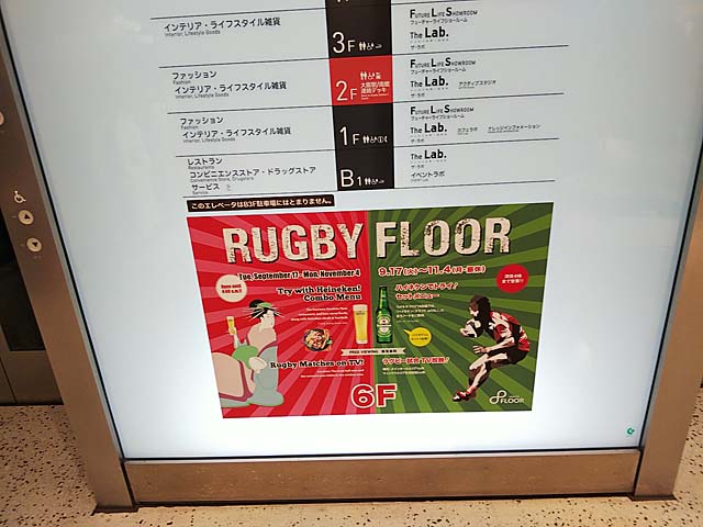 一人はちと遠いのでここで帰路に。もう一人がラグビーパブリックビューを見に行くというので一緒に行きます。ラグビーワールドカップ予選スコットランド戦です。台風の影響で中止もありましたがスタッフたちの努力で開催されます。中止なら日本は1位通過なんだけどね((((^x^;コソコソ