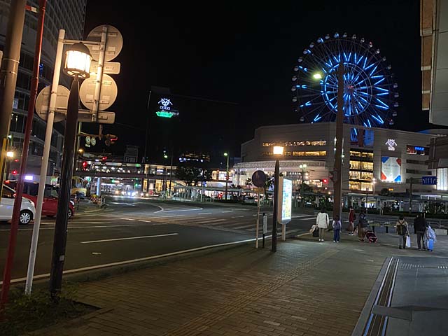 鹿児島中央駅前、ここから徒歩数分で本日の宿です。