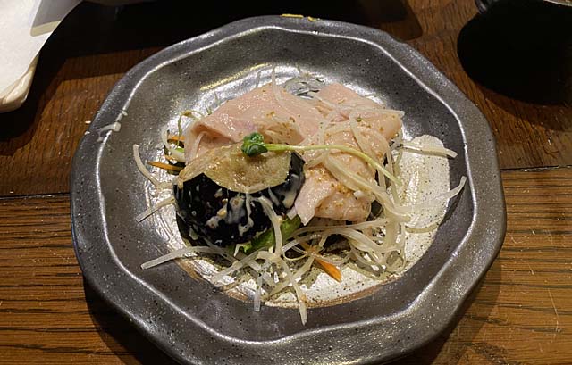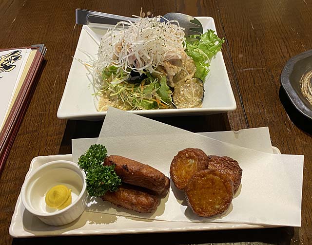 鹿児島のおつまみさつま揚げと黒豚揚げなすのサラダ