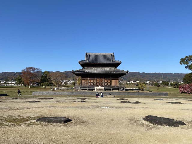講堂跡に建っている建物は江戸時代元禄年間に作られたもので幾度か移築されていて現在の場所は初期の中央辺りになります。大きさは数分の一ですけどね。