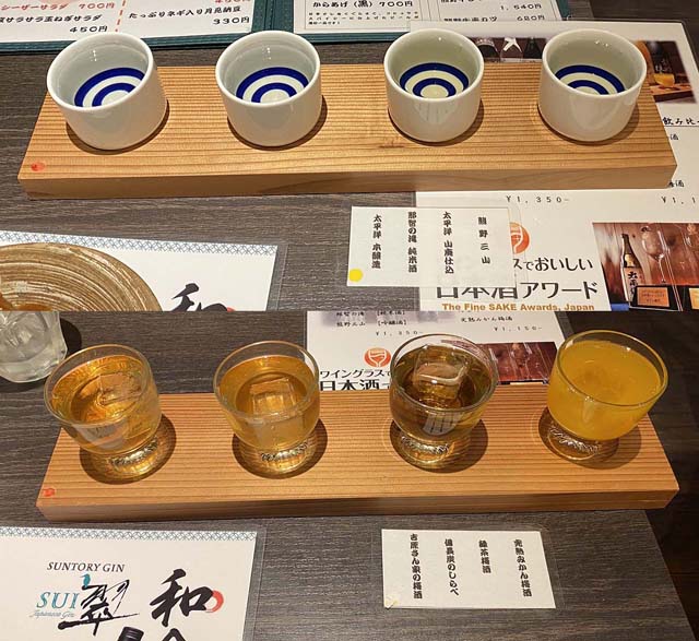 ビールの後は、日本酒飲み比べと、梅酒飲み比べです。梅の産地の紀州ですからね。