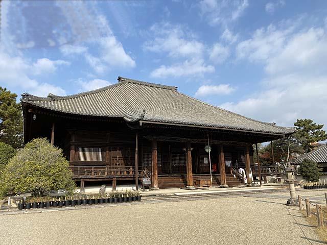 平城宮のうしとらの方角。鬼門に位置したために碁盤の線のラインをまげてでも残されたお寺。玄昉(吉備真備と共に遣唐使として唐で学んだ人物)が住職を務め内廷寺院となる。