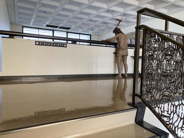 まずはこちらでお勉強。これから回る地で発掘された副葬品等が展示されています。日本最大級の鏡を含め40面の銅鏡(すべてが国宝)他が展示されています。復元された銅鐸があるのですが叩けます。『大きい音がするので軽く』と書いてあるので軽くたたいたのですがそれでも大きい音がしてヾ( ̄o ̄;)オイオイ
