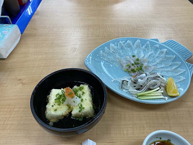 ふく刺を食べ始めたところへ揚げ出し白子豆腐が来ました。
