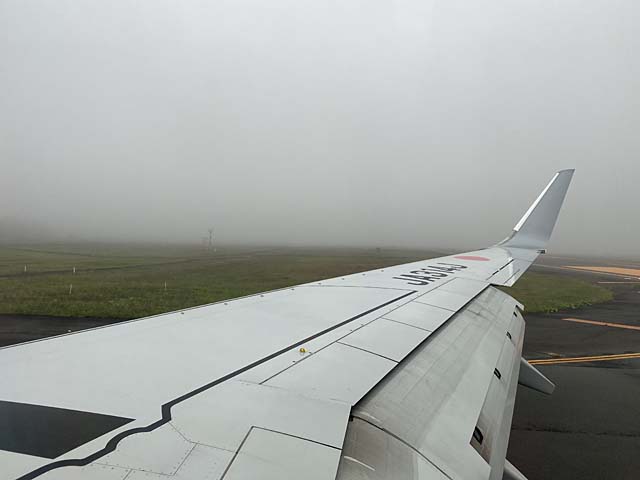 着陸した釧路空港。視界何メートルでしょうか。まだ誘導灯が目視できたから着陸したんでしょうね(推測です)