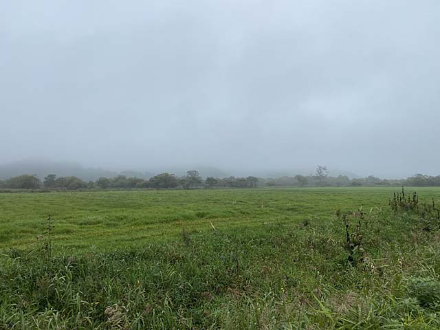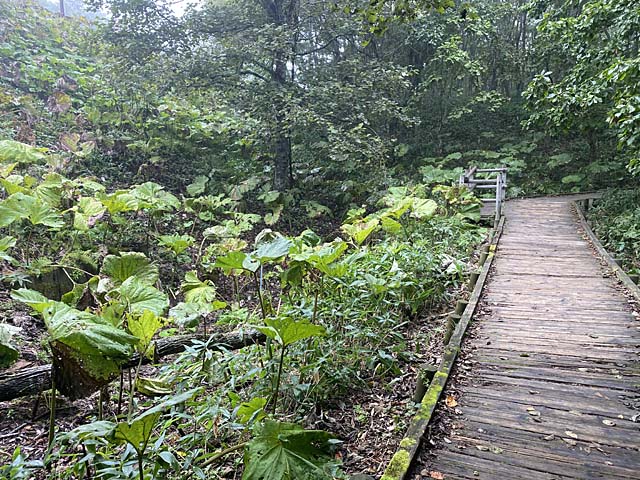 さぁ、ぶら君で出発です。かすかに霧雨か。直前の予報では夕方までは曇りでしたが。雨具を使うほどでもないので行きます。