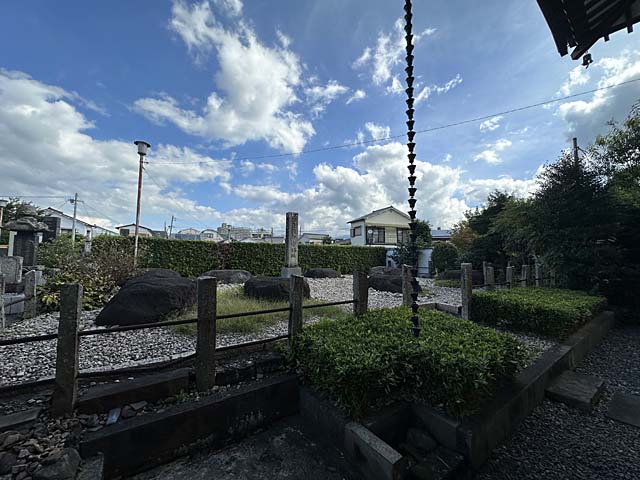 伊豆国分寺と重なる。遺構は確認されているが詳細不明。塔跡の基壇と礎石が遺構として保存されていて国の史跡に指定されている。お掃除中の住職さんをご挨拶。