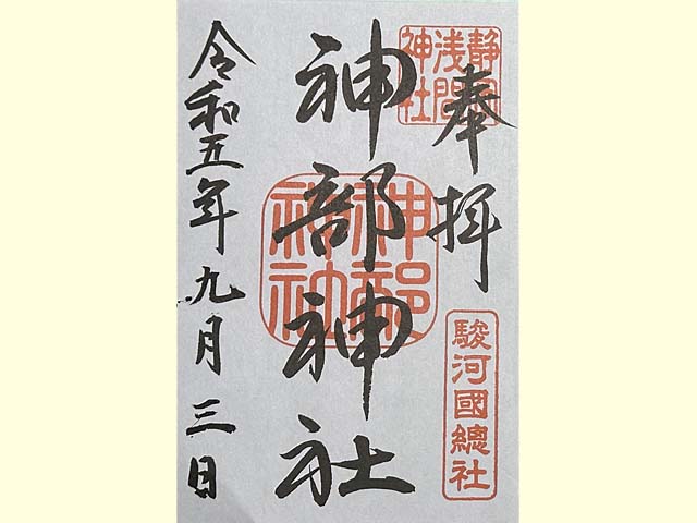 このあと事任八幡宮(遠江国一宮)による予定(時間的には十分間に合う)でしたが、静岡を回っている頃は33℃、コンビニでエネルギーと水分補給するも後の祭り状態。出だしで20分遅れていることもあって気力が(^^ゞ ということで今回はパスすることに。伊豆国、駿河国と2か国回れたのだから良しとしましょう。