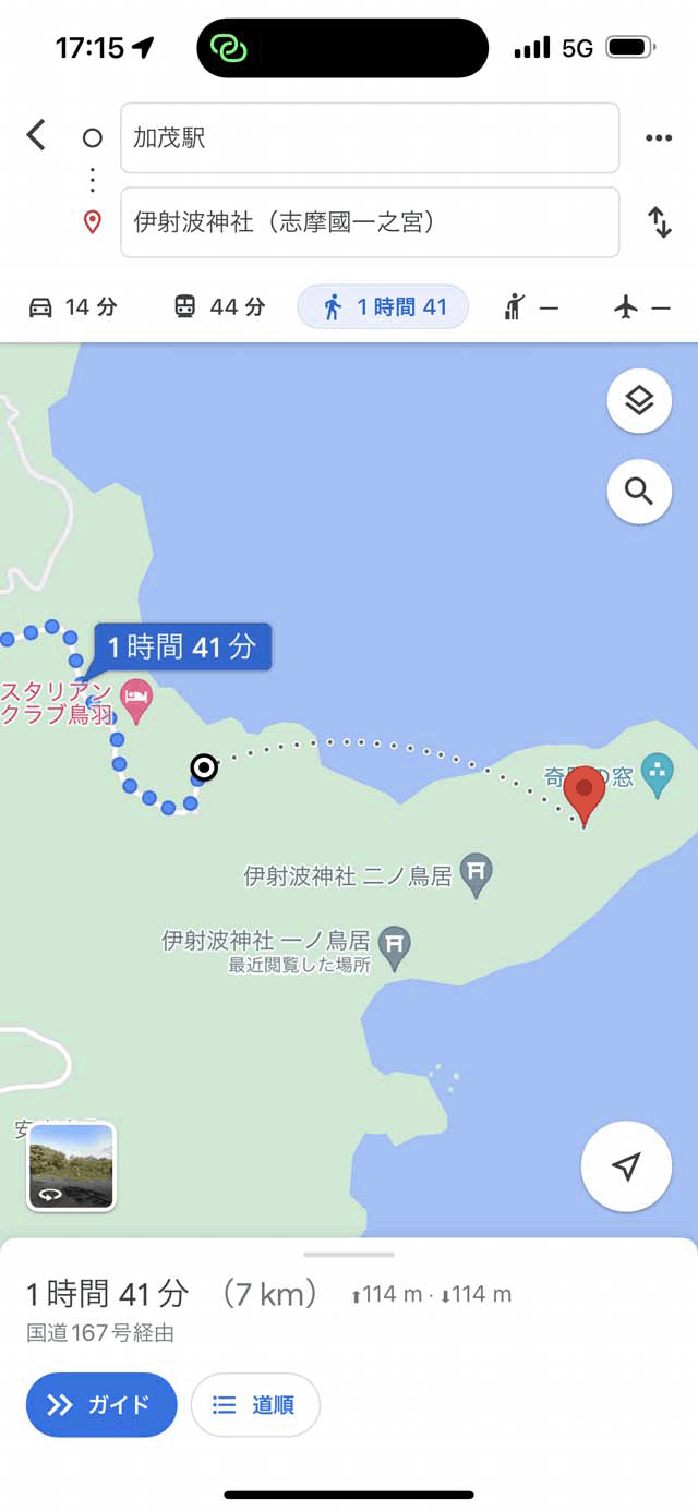 鵜方駅から志摩国分寺、伊雜宮、伊射波神社から志摩赤崎駅まで。