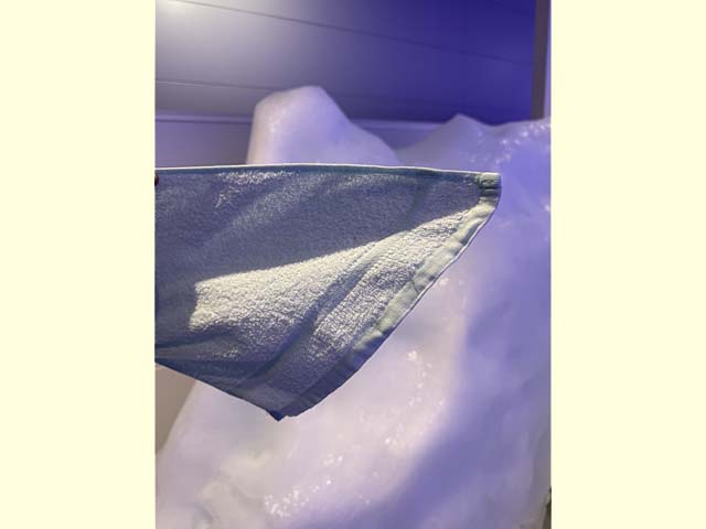 テレビなどで見かける風景(笑) タオルが凍って横に張り出します。