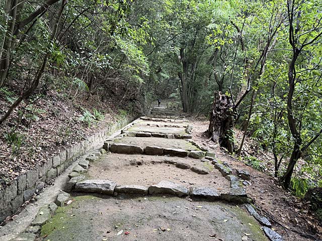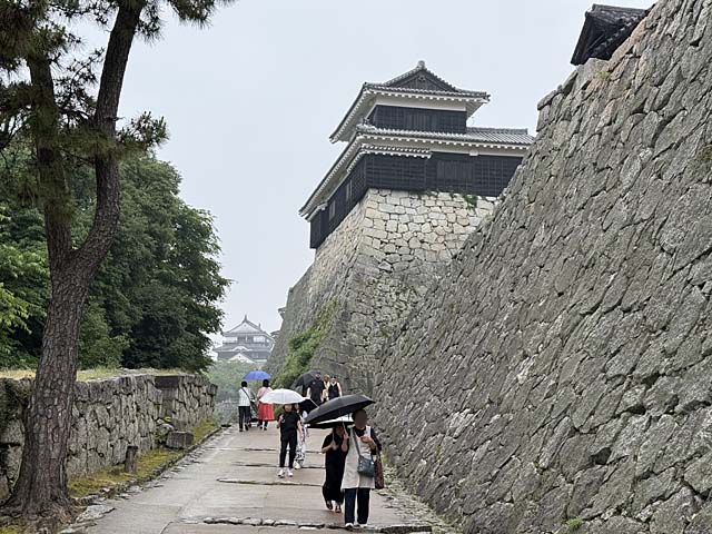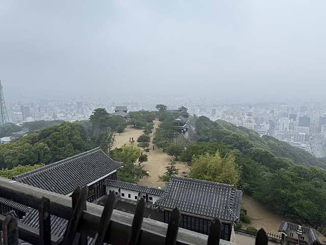 もやってて、遠景は望めませんが、お庭は堪能しました。しかし、天守閣へのチケット売り場付近でか傘袋を落としてしまい、仕方なくドリンクカバーを傘袋代わりに。下りはロープウェイで(^^ゞ