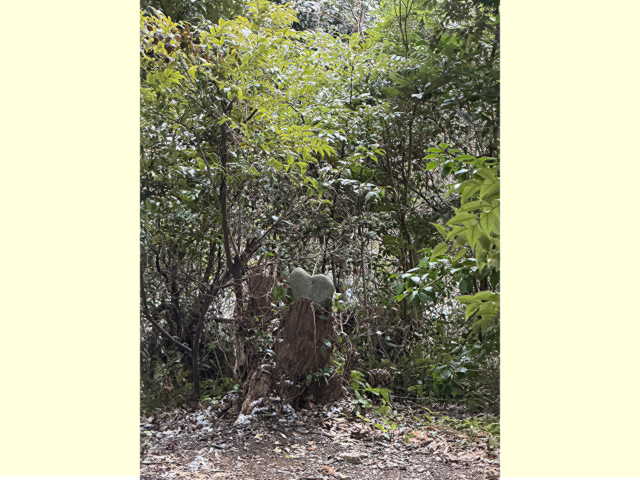 切り株に乗せられていたハート形石。