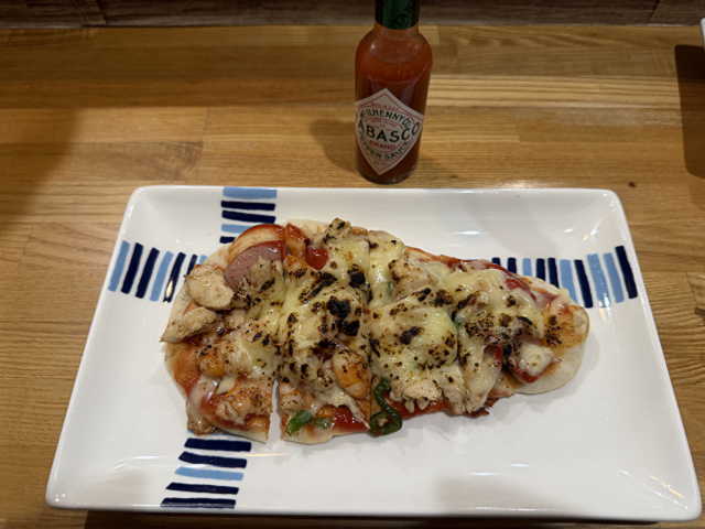 ナンピザ。通常のピザは大きいと店主の提案でナンピザにしました。