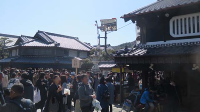 バスは宇治橋近くの駐車場を確保。内宮へ行く前におかげ横丁へ。