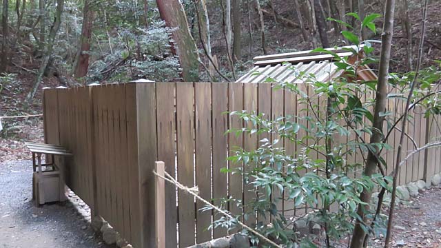 古殿地。時が時ならば撮れない場所です。奥の小さい建物の場所がご神体のあった場所ということになります。