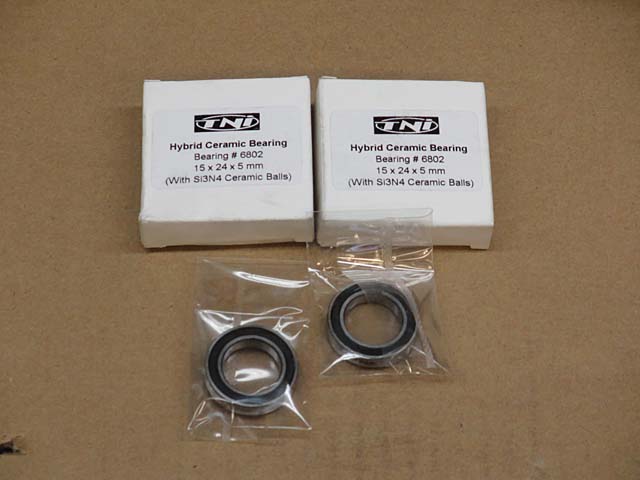 フロントハブ。ブロンプトン軽量パーツメーカーのbrompficationの軽量ハブに交換してある。カップ&コーンからシールドベアリングになった。これで回転も軽くなった(レースの世界ではシマノは未だにカップ&コーンを使い続けているらしい。ということは一概に回転が軽くなったとは言えないのかもしれない)はず。これのシールドベアリングを今日(2016年6月1日)セラミックのに交換した。同じ機構のものを性能の良いものに交換したのだからよくなっているはず。交換後の試乗の第一印象は出だし変わらず、中速~高速にかけての踏み出し、加速がよくなった感じ… がする(笑)思い込みかもしれないけど。