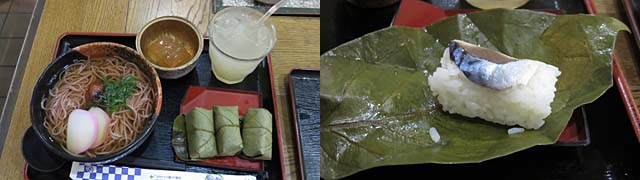 注文したのは多くのところのメニューにある梅そば。名物なのか? 温かい梅そばに奈良名物の柿葉寿司とくず餅、ジンジャーエールのセット。美味しくいただきました(*^^*)