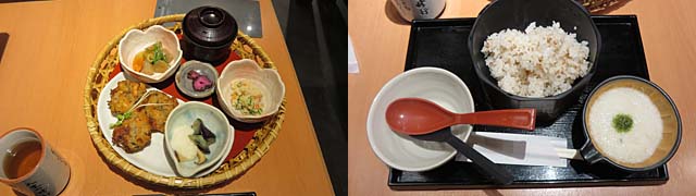 ごく普通の献立です。もちろん十分です。ただね、焼き魚(ししゃも?)と焼きベーコンが冷たかった。冷めたベーコンの油はいただけません (--; これだけが残念。