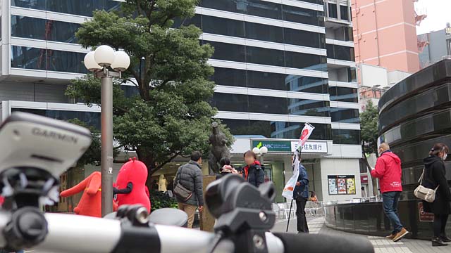 着いたはいいけれどなにか賑やか。NHKのネットラジオ「らじるらじる」のキャンペーンに鹿児島県曽於市公認ゆるキャラ「そお星人」が参戦してたようで。
