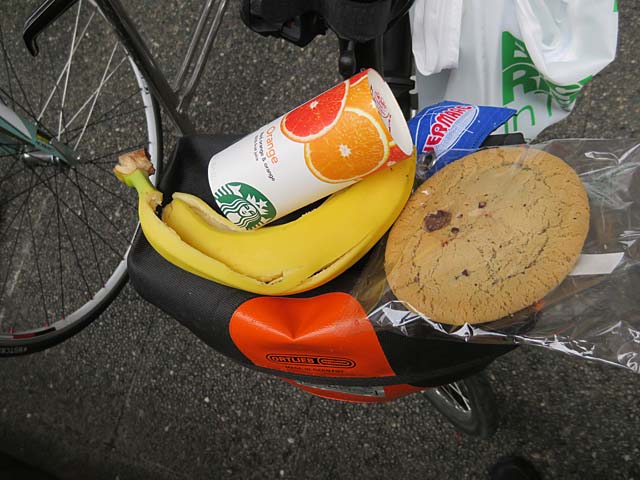 スターバックスコーヒーエイドステーションでオレンジジュース、バナナ、クッキーが提供されました。いつもながら写真撮り忘れてバナナ食べた後(^^;