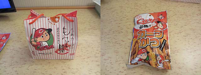 カープ印のもみじ饅頭とカープかつ、つい買ってしまった(^^ゞ