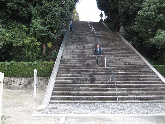 社務所で地図をもらい神武天皇の腰掛け石を見に行きます。