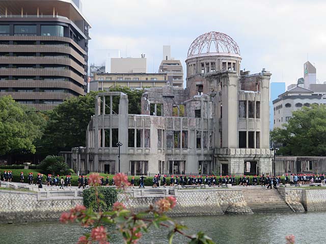 修学旅行と思われる団体が多数、それ以外にも大勢が訪れていました。観光バスも大量。自転車ではモニュメント等には危なくてあまり近づけません。