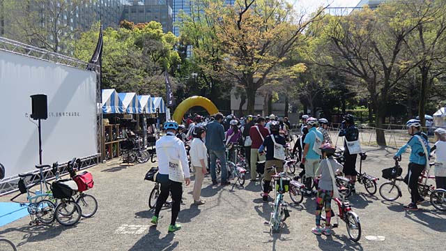 スタートの様子。ブロンプトンオーナー枠は9時半の最終なのでしょうか。ブロンプトンばかりで圧巻です。最後でいいやとのんびりしてたら誰もいなくなってしまって慌ててスタートします。やってしもうた(^^ゞ